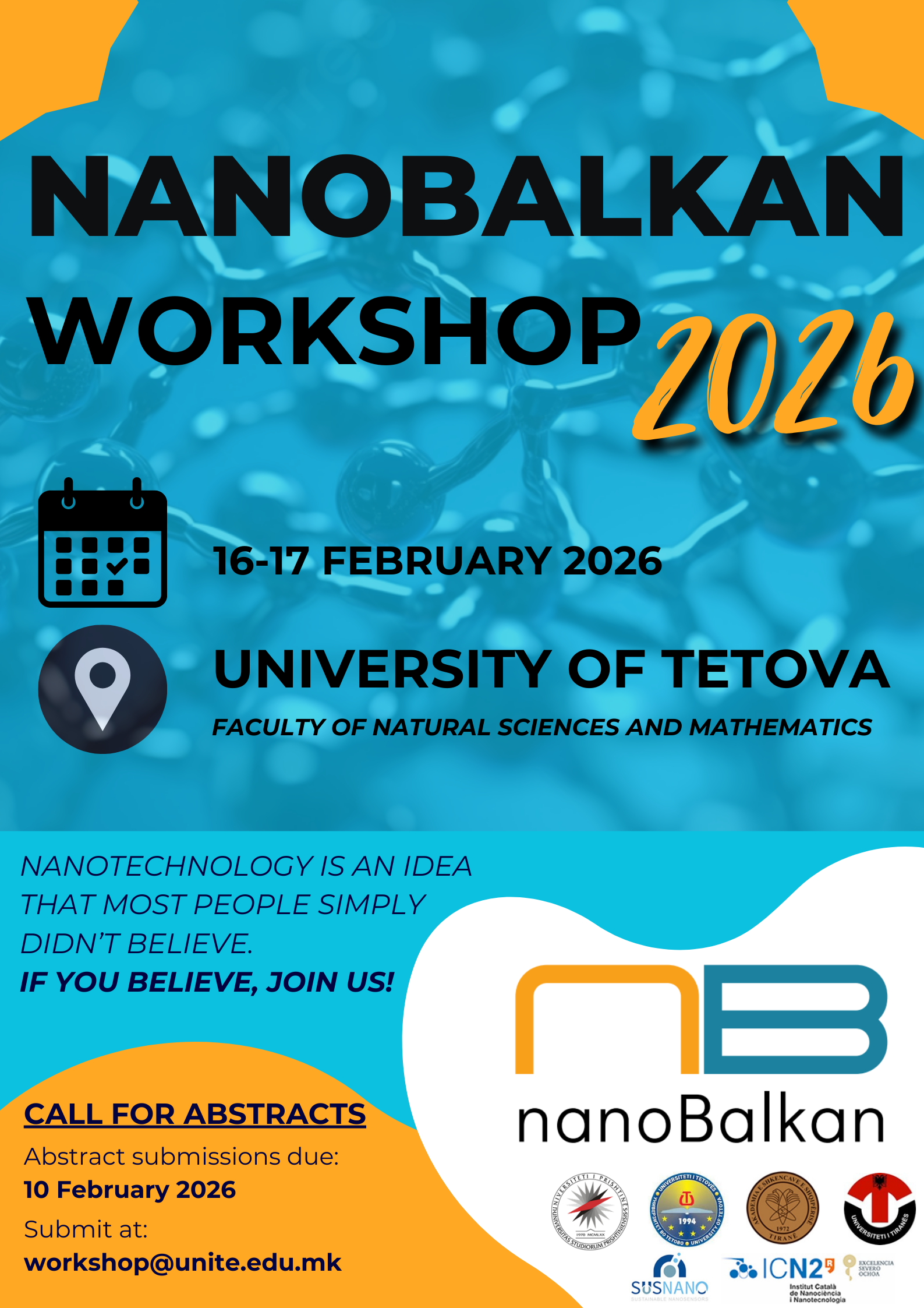 NanoBalkan is the Regional Center for Nanotechnology, established as a virtual hub to advance research and development in nanoscience and nanotechnology across the Balkan Peninsula and beyond. Evolving from its predecessor, NanoAlb-the Albanian Nanoscience and Nanotechnology Unit under the Academy of Sciences of Albania. The primary mission of nanoBalkan is to strengthen R&D efforts in nanoscience and nanotechnology while fostering collaboration and synergy between research groups and industry stakeholders. In addition to its research initiatives, nanoBalkan offers specialized academic programs, including master's courses focused on nanotechnology applications in healthcare (diagnostics and therapies), the pharmaceutical industry, environmental sustainability, food and agriculture, and safety and security sectors. Furthermore, nanoBalkan is dedicated to the dissemination of scientific knowledge and technological advancements to society. It actively promotes educational outreach to inspire and engage the next generation of scientists, particularly secondary school students and young learners with an interest in science and technology.